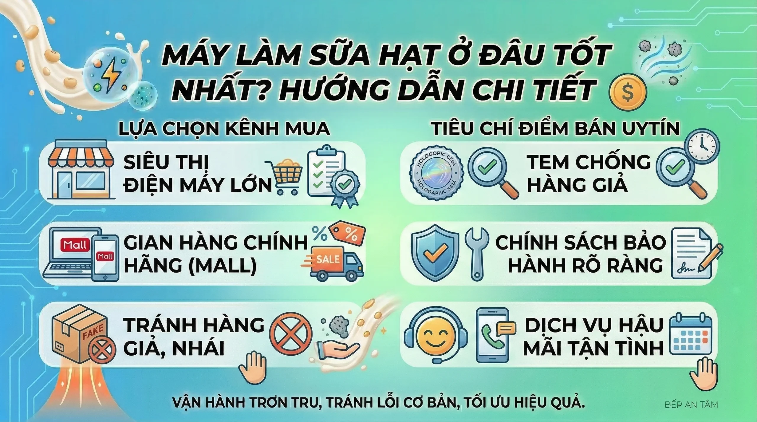 Vấn nạn hàng giả, hàng nhái trôi nổi trên thị trường đang làm người tiêu dùng nhức nhối khi đi tìm câu trả lời cho việc máy làm sữa hạt ở đâu tốt nhất. Mua đồ nhà bếp tiện ích thì không khó, nhưng làm thế nào để số tiền vài triệu đồng bỏ ra tương xứng với hiệu quả dài hạn và được chăm sóc tử tế lại là một bài toán đau đầu.